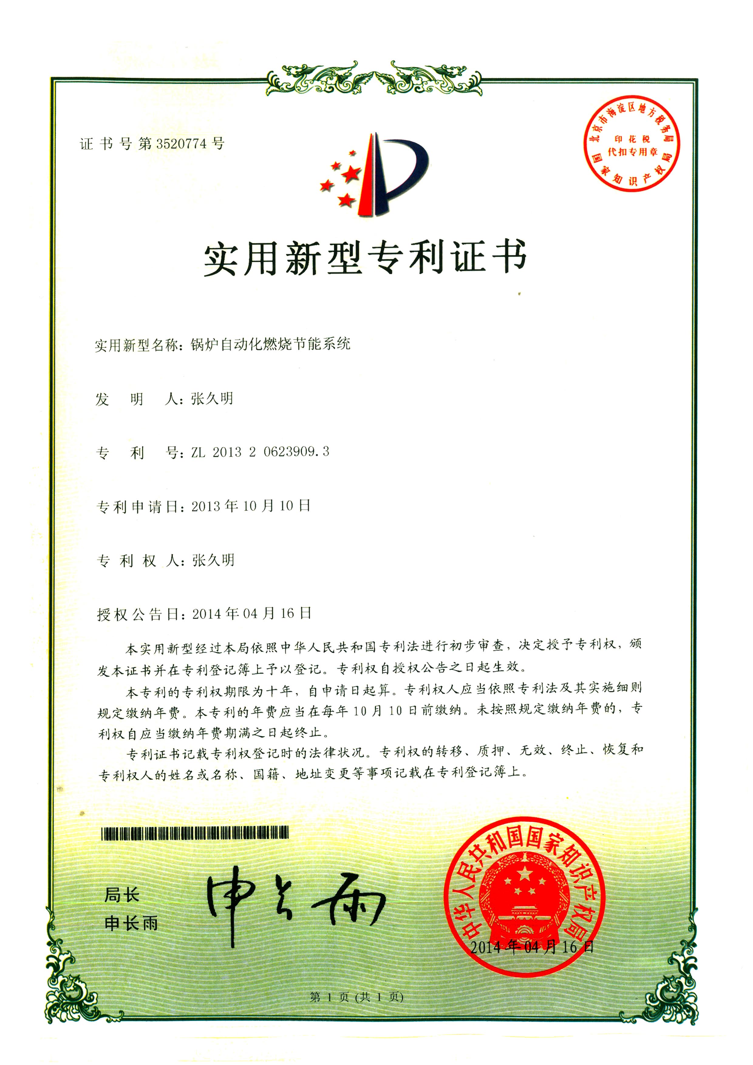 鍋爐自動化燃燒節(jié)能系統(tǒng)實用新型專利