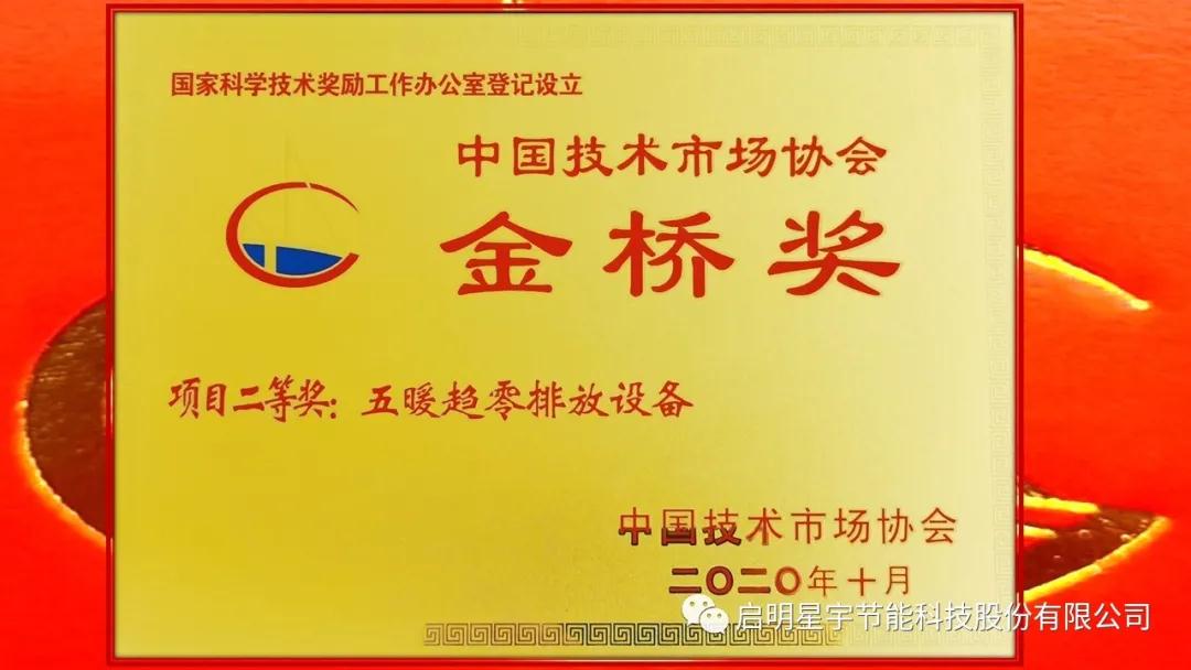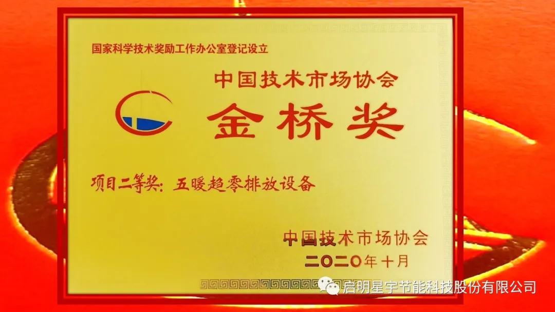 啟明星宇節(jié)能科技股份有限公司,脫穎而出,五暖牌趨零排放設(shè)備,被中國技術(shù)市場協(xié)會(huì)評(píng)為《第十屆中國技術(shù)市場協(xié)會(huì)金橋獎(jiǎng)項(xiàng)目二等獎(jiǎng)》!