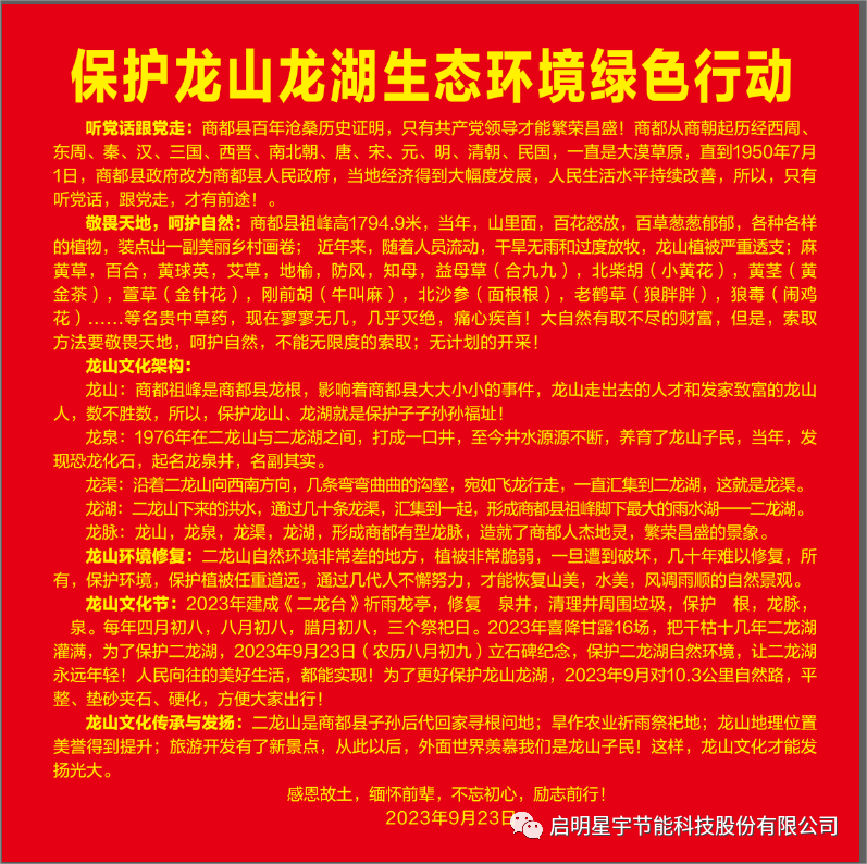保護(hù)龍山龍湖生態(tài)環(huán)境綠色行動(dòng)